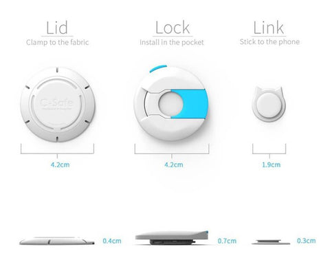 C-Safe is a patented world's first mechanical lock that can physically protect your Mobilephone Wallet and Valuables from pickpockets or dropping. The phone will stay attached to your pocket under your full control with no battery required, no charging! You won't need to check if your valuables are still there again... they are.