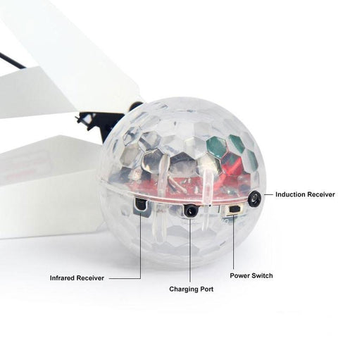 - Any infrared remote control (TV remote, Samsung phones, etc.) can turn the LED Magic Flying Ball on or off (RC remote not included).